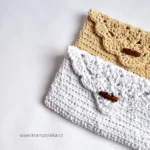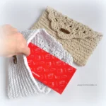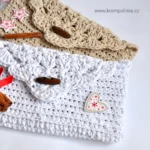As for the shape, it’s basically a crocheted pouch worked in rounds around the foundation chain. The pattern is very simple – made only with half double crochet stitches. The flap is crocheted as part of the envelope and features a starmink (flower) stitch pattern. I’ve filmed a video tutorial, so even beginners don’t need to worry — you’ll manage it easily! The pouch is made in one piece, so no sewing is needed. And since Christmas is just around the corner, let’s get started — I still need to finish two more!