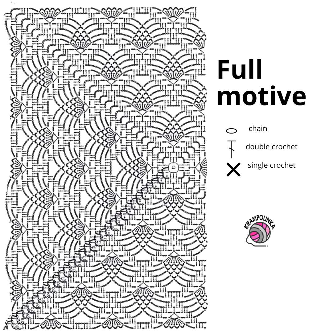 Continue working on the right side. Where the pineapple motif ends, complete the pattern using double crochets. Where increases were made, work arches of ch4 with sc.