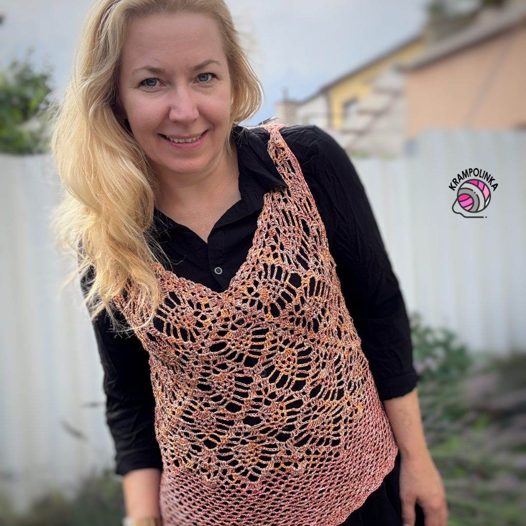 This pattern is intended for personal use only. If you would like to use it for commercial purposes, please contact me first. Always include the source link: www.krampolinka.cz when sharing your projects online. The pattern is specifically written for the yarn, hook size, and tension used in this sample. If you use a different yarn or hook, your final bag size and shape may vary.