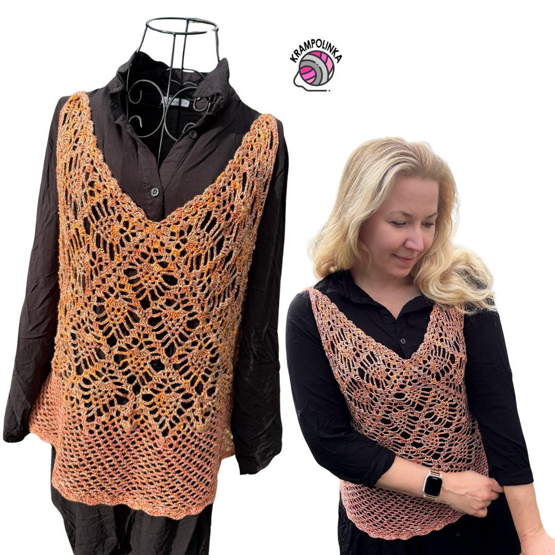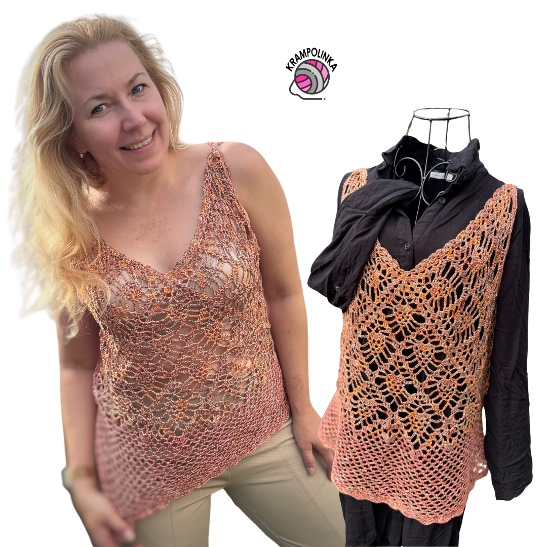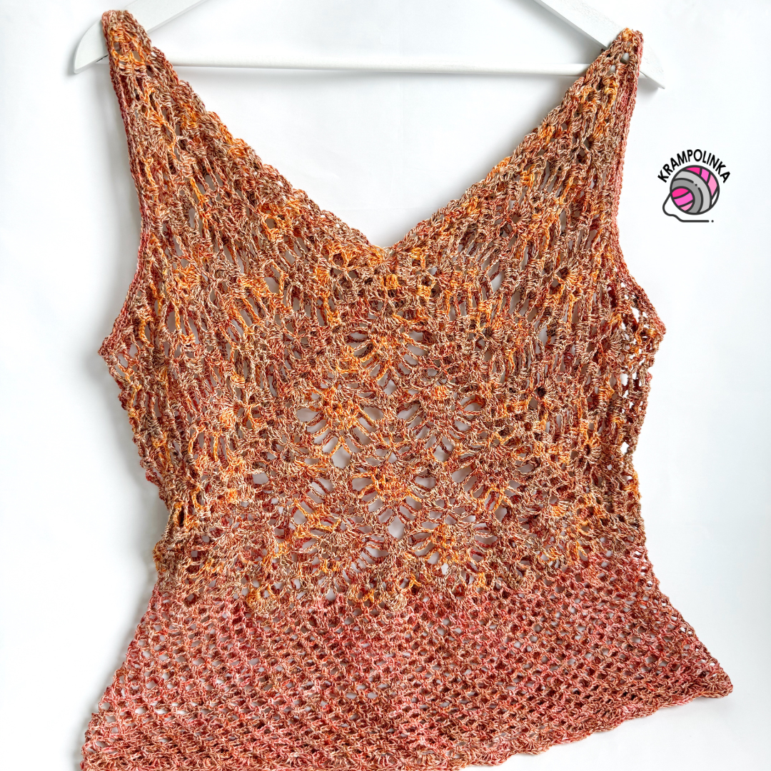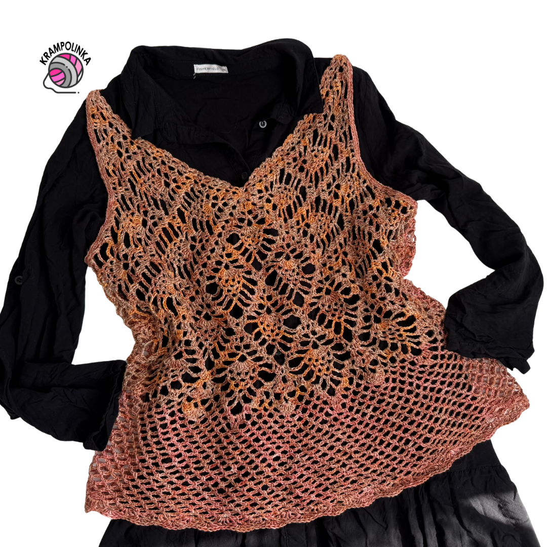 I hope your Amber top or vest turns out beautifully and brings you joy when wearing it. Would you like to inspire others or share your experience with crocheting or styling the Amber design? Feel free to post your photos in the Krampolinka Facebook group. On Instagram, please use the hashtag #topamber or #vestamber for easy searching. If you tag me in your projects made with my patterns, I may reshare them in my InstaStories to inspire others.