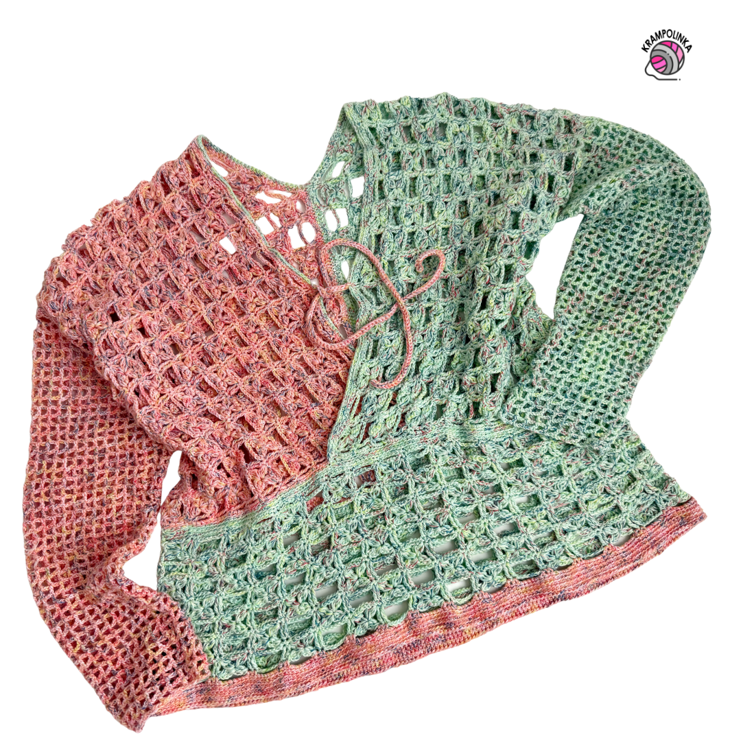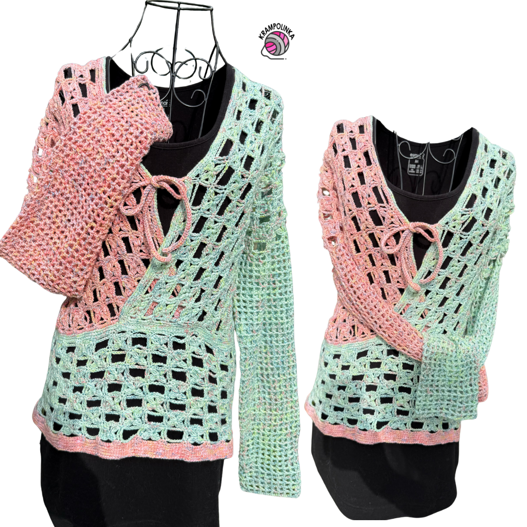 I hope your BB Cake Sweater turns out beautifully and that you wear it with joy! Would you like to inspire others or share your experience with crocheting or styling the BB Cake Sweater? Feel free to post your photos in the Krampolinka Facebook group. On Instagram, please use the hashtag #svetrikbbcake for easy searching. If you tag me in your projects made with my patterns, I may reshare them in my InstaStories to inspire others.