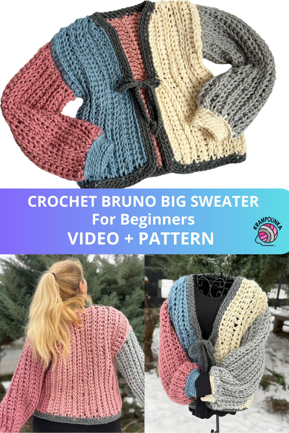 Crochet Oversized Sweater Made with Bruno Big Yarn in one Day