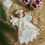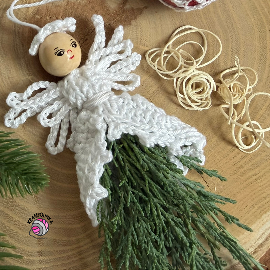 That’s how the Evergreen Angel was born – a small, light, and wonderfully fragrant Christmas decoration that combines crochet with a touch of nature. The Evergreen Angel is crocheted using Vlna Hep Camilla or Schachenmayr Catania yarn (50 g / 125 m, 100% cotton). If you manage to find cotton yarn with a delicate lurex thread, your angel will look even more festive and will beautifully sparkle in the Christmas lights.