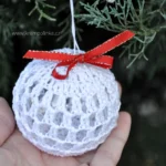 Vlna-Hep Moonlight comes in 100 g balls with a length of 550 m. It is made of 100% cotton. This yarn is perfect for lightweight summer dresses, skirts, and tops. It is also popular for crocheting doilies, tablecloths, decorations, and dreamcatchers. For the bauble itself, you can use either transparent two-part ornaments (for example from Stoklasa) or standard Christmas baubles sold in sets, such as those from Tesco, diameter 6 cm. We will start crocheting from a loose magic ring. After a few rounds, we slip the “cover” onto the hanging part of the bauble, tighten the magic ring, continue crocheting in rounds, and gradually decrease until the ornament is fully closed.