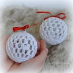This pattern uses a regular repetition of two double crochets and two chain stitches, creating small rectangular “windows.” If you need video assistance, you can follow a similar tutorial here. I hope your Granny Moonlight Bauble turns out beautifully. Would you like to inspire others or share your experience with crocheting this bauble? Please post your photos in the KRAMPOLINKA Facebook Group. On Instagram, use the hashtag #bankagrannymoonlight for easy searching.