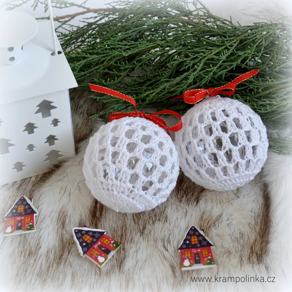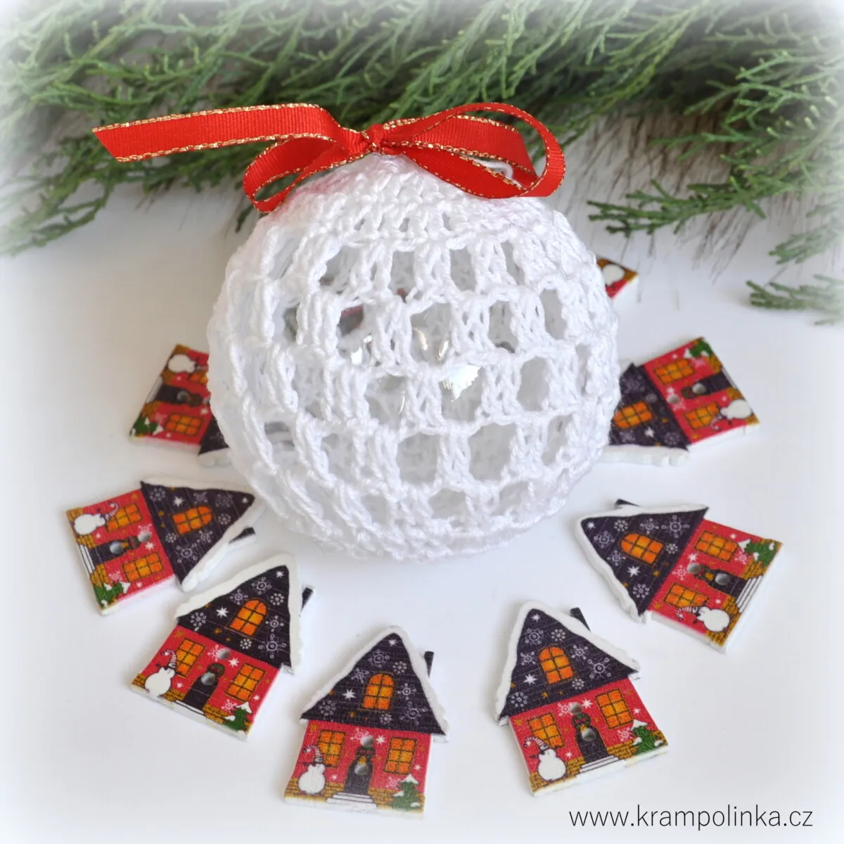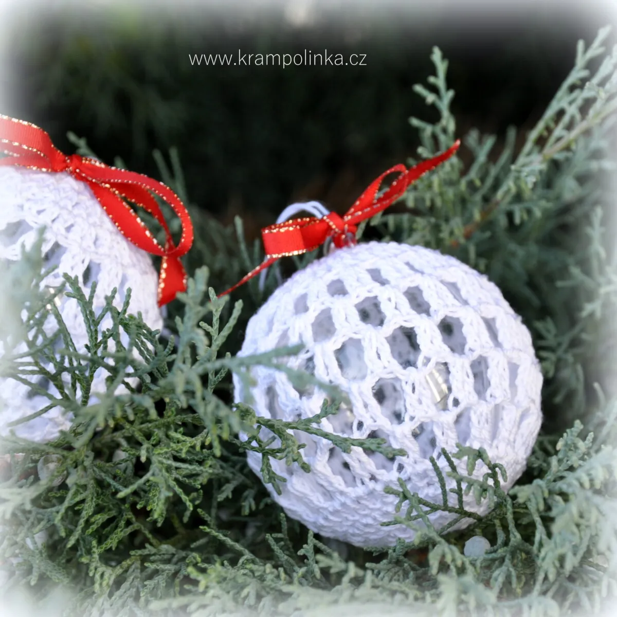 Vlna-Hep Moonlight comes in 100 g balls with a length of 550 m. It is made of 100% cotton. This yarn is perfect for lightweight summer dresses, skirts, and tops. It is also popular for crocheting doilies, tablecloths, decorations, and dreamcatchers. For the bauble itself, you can use either transparent two-part ornaments (for example from Stoklasa) or standard Christmas baubles sold in sets, such as those from Tesco, diameter 6 cm. We will start crocheting from a loose magic ring. After a few rounds, we slip the “cover” onto the hanging part of the bauble, tighten the magic ring, continue crocheting in rounds, and gradually decrease until the ornament is fully closed.