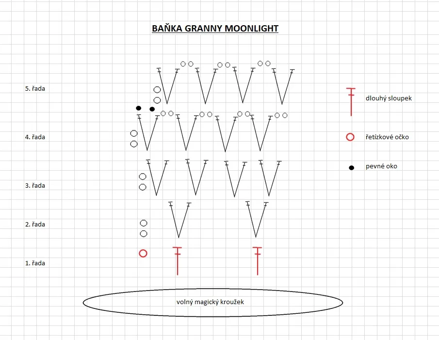This pattern uses a regular repetition of two double crochets and two chain stitches, creating small rectangular “windows.” If you need video assistance, you can follow a similar tutorial here. I hope your Granny Moonlight Bauble turns out beautifully. Would you like to inspire others or share your experience with crocheting this bauble? Please post your photos in the KRAMPOLINKA Facebook Group. On Instagram, use the hashtag #bankagrannymoonlight for easy searching.