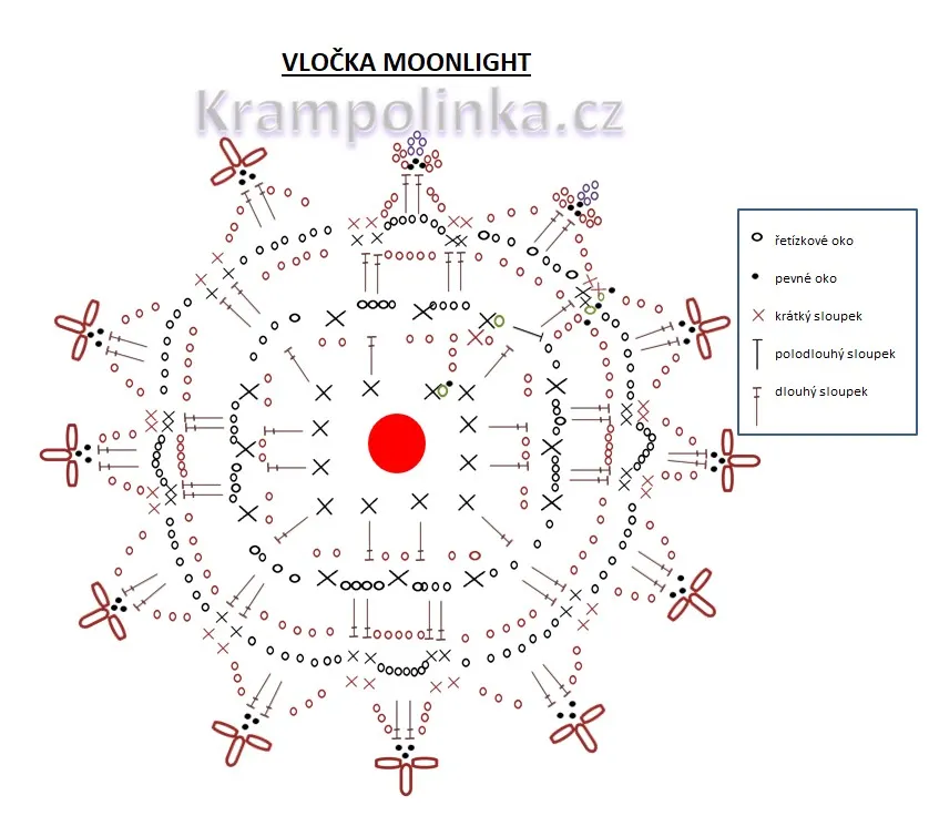 The pattern uses basic stitches: chain (CH), single crochet (SC), and double crochet (DC). You can decorate the finished snowflake with a thin ribbon or jute twine. Optionally, add glitter and set it with hairspray for extra sparkle. You can try different colors of Vlna Hep Moonlight — red will also look wonderfully festive. I hope you enjoy making your Moonlight Snowflake!