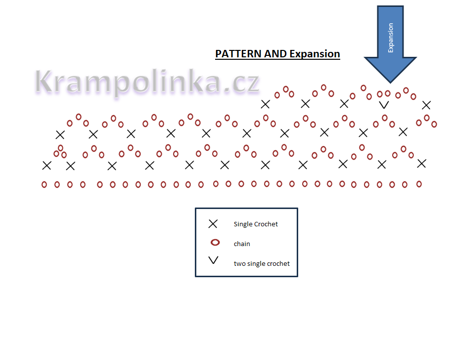 Row 20: Expansion. For expansion, crochet *sc-ch-sc* under one loop. Expand every eleventh loop.