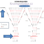 For the pattern, we crochet double crochet stitches for the bodice, a mesh pattern for the body of the dress, and treble crochet stitches for the ruffles. I used a 3 mm hook for the upper part and a 4 mm hook for the mesh part of the dress. Note – the dress will stretch by approximately 7-10 cm due to its weight. It is necessary to adjust the number of rows to your height and account for possible stretching. I would recommend this dress for sizes up to 42. For larger sizes, more yarn will be needed and the dress will be heavier. When I measured the arches, I had 7 arches in 10 cm.