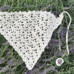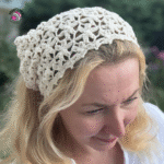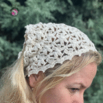 The Vintara Headscarf is worked from the bottom point upwards in back-and-forth rows. It features a beautiful, airy floral pattern, making it light and breathable. Along the edges, a decorative border naturally forms as you crochet, so there’s no need for additional finishing.
