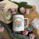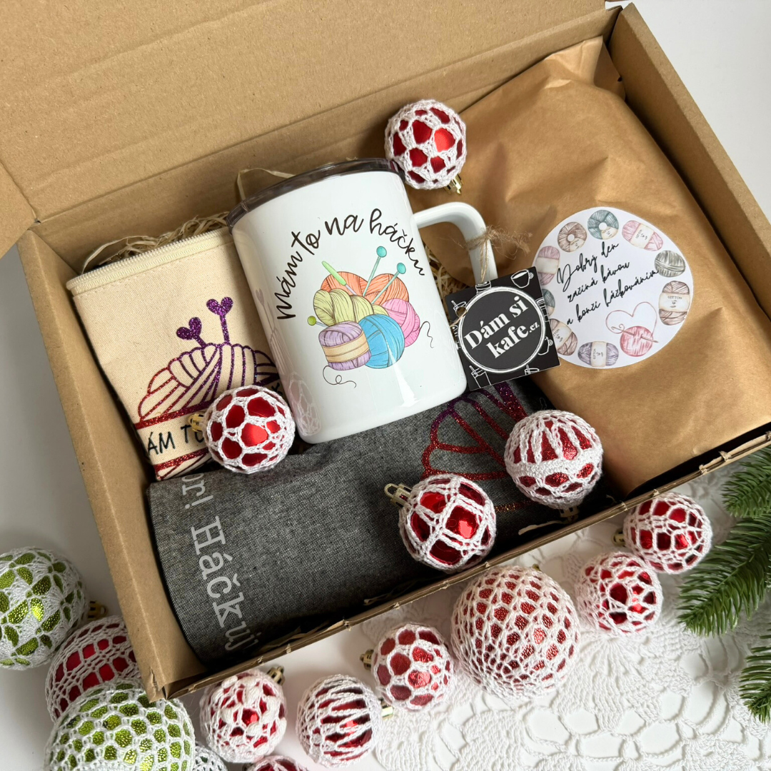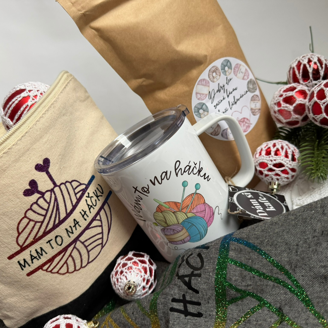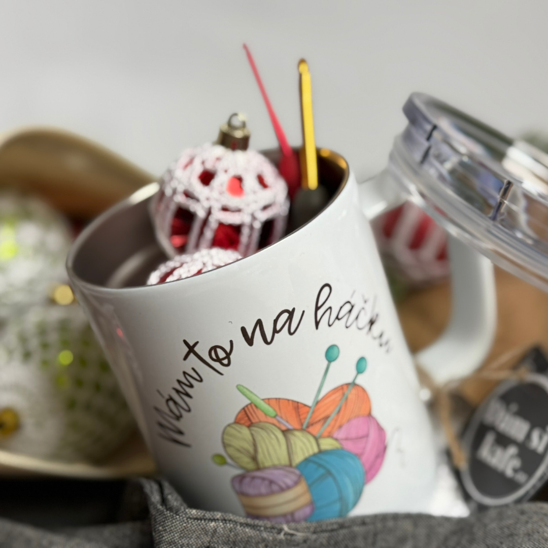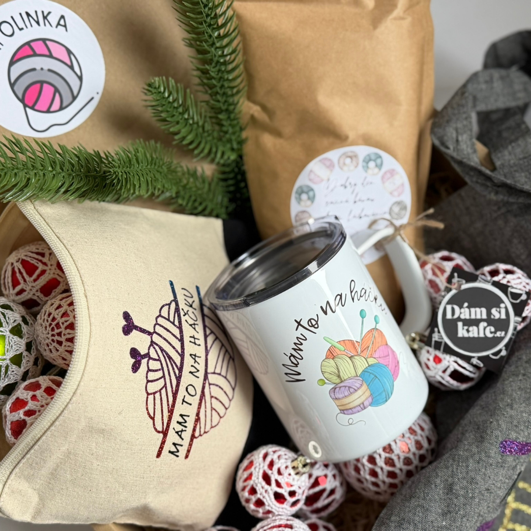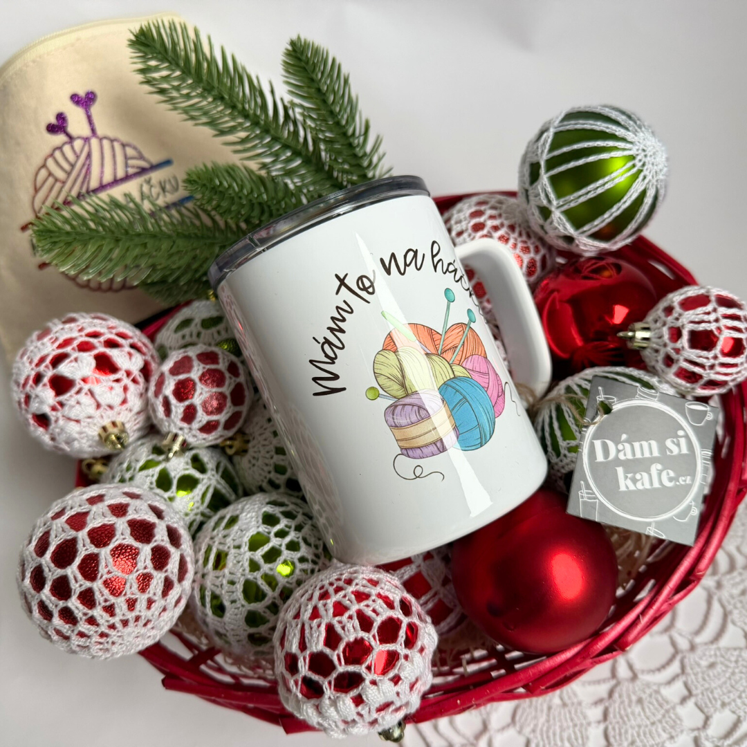 Looking for a gift idea? You can create a stylish gift set! Put the thermal mug with a handle into a gift box, add coffee or nuts, and as a bonus include a cotton tote bag for yarn with a crochet design. Everything will be beautifully packed and ready to go straight under the Christmas tree. A perfect gift for yourself or a friend. Send this link to Santa so he doesn’t get confused.