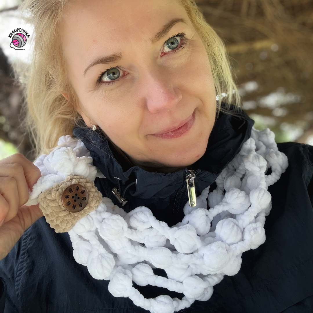 I hope your Bubble Cowl turns out beautifully — and that you’ll wear it with joy! Would you like to inspire others or share your experience with crocheting or styling the Bubble Cowl? Feel free to post your photos in the Krampolinka Facebook group. On Instagram, please use the hashtag #nakrcnikbublina for easy searching. If you tag me in your projects made with my patterns, I may reshare them in my InstaStories to inspire others.