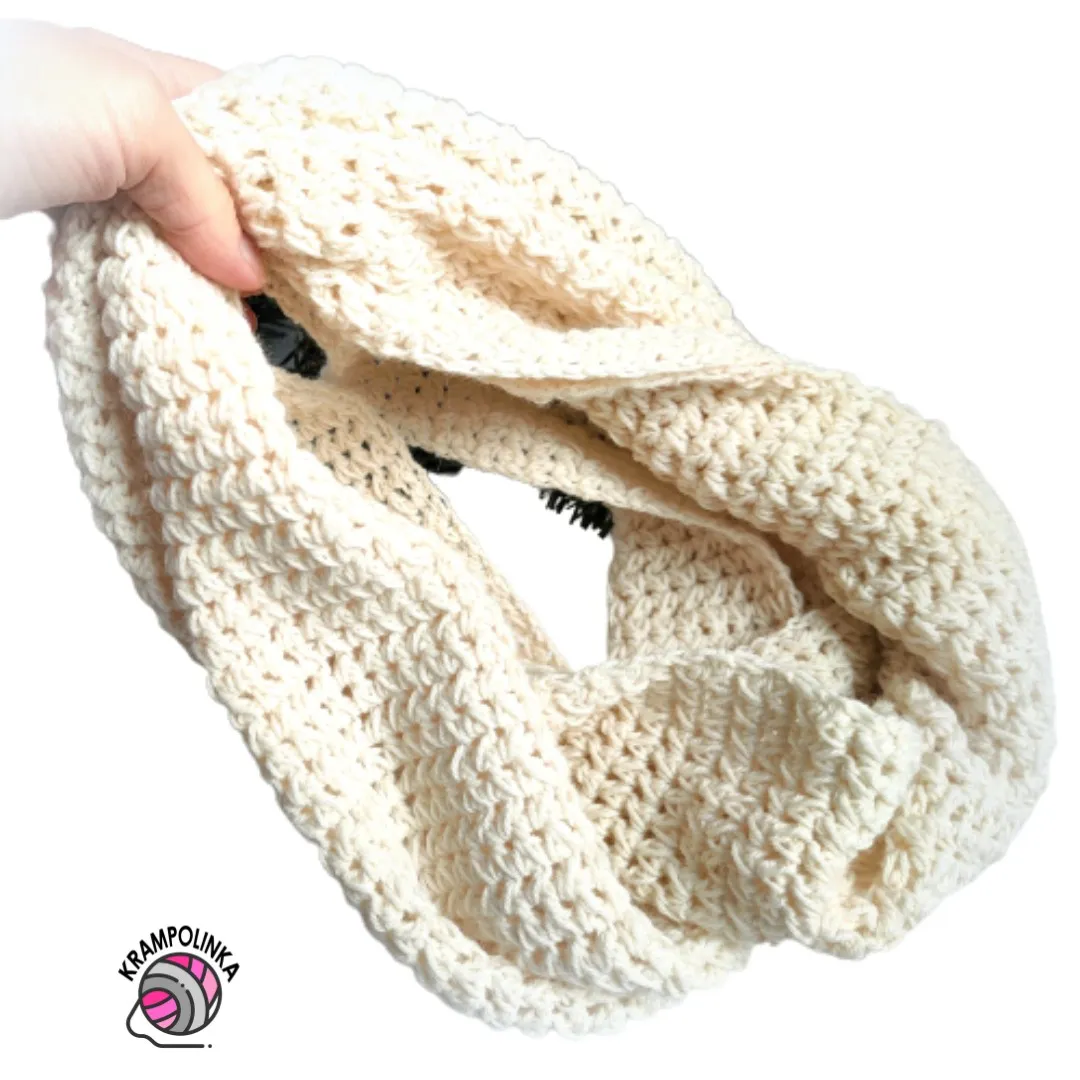 Wishing you lots of joy with your Merino Infinity Scarf! Would you like to inspire others or share your experience with crocheting the cowl or scarf? Feel free to upload your photos to KRAMPOLINKA Facebook Group. For easy searching on Instagram, please use the hashtag #tunelbiosock or #salabiosock. If you tag me, I’ll be happy to share your post in my Stories.