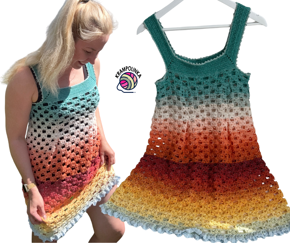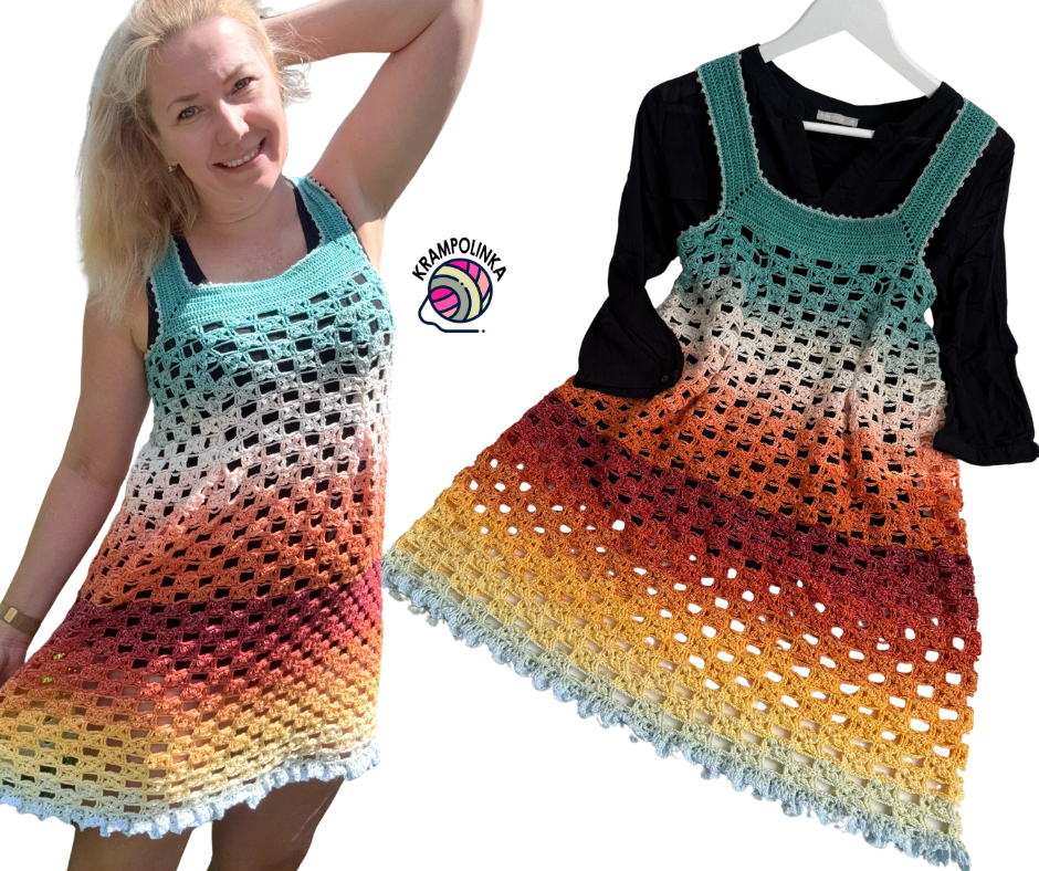 […] From the Buena Vida yarn cake, I created both a dress and a tunic. The dress is worn over a T-shirt with leggings, while the tunic works perfectly over swimwear. The tunic is crocheted using a pattern from a book published in 1914, giving it a lovely vintage feel. You can purchase the Buena Vida yarn cake here, and the video tutorial in English for the Buena Vida tunic is available here. […]
