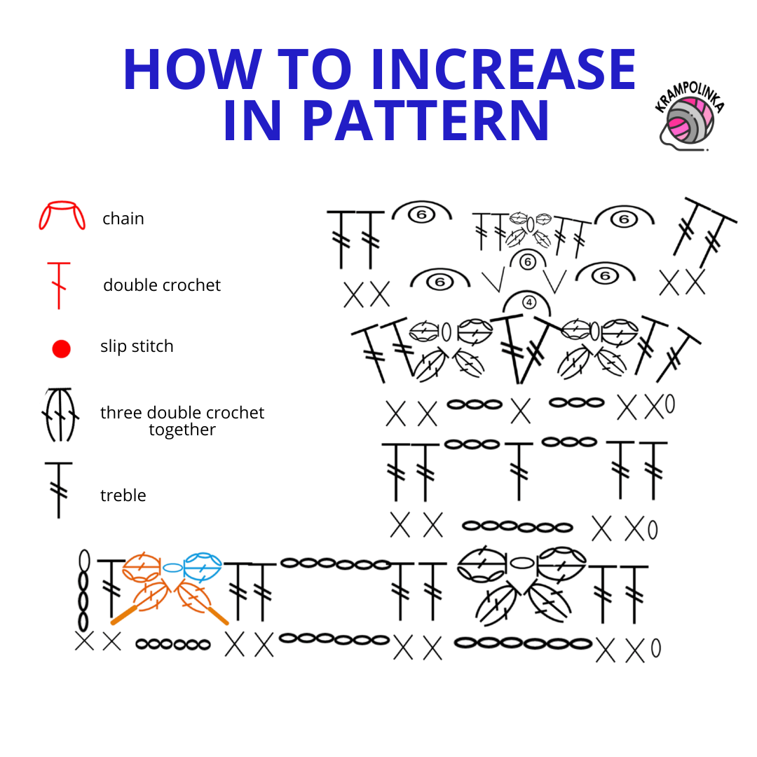 Corner of the yoke: Ch 3 (counts as dc), ch 3, dc into the same stitch.