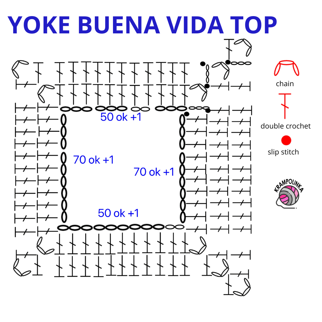 To shape the yoke corners, crochet the last chain of the neckline and the first chain of the shoulder into the same stitch – this creates a corner.
