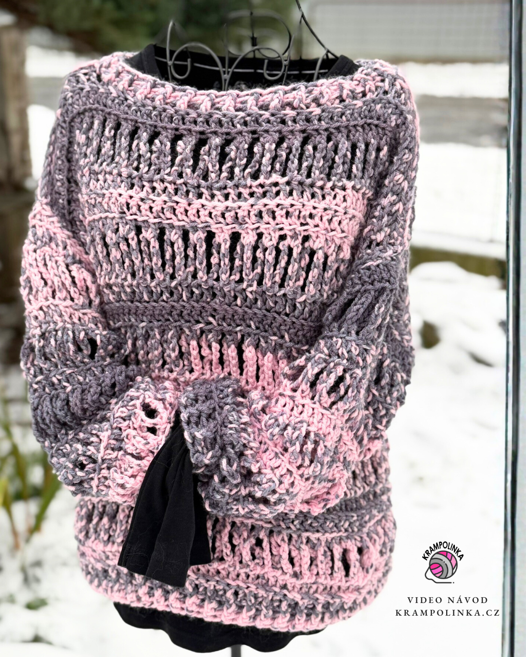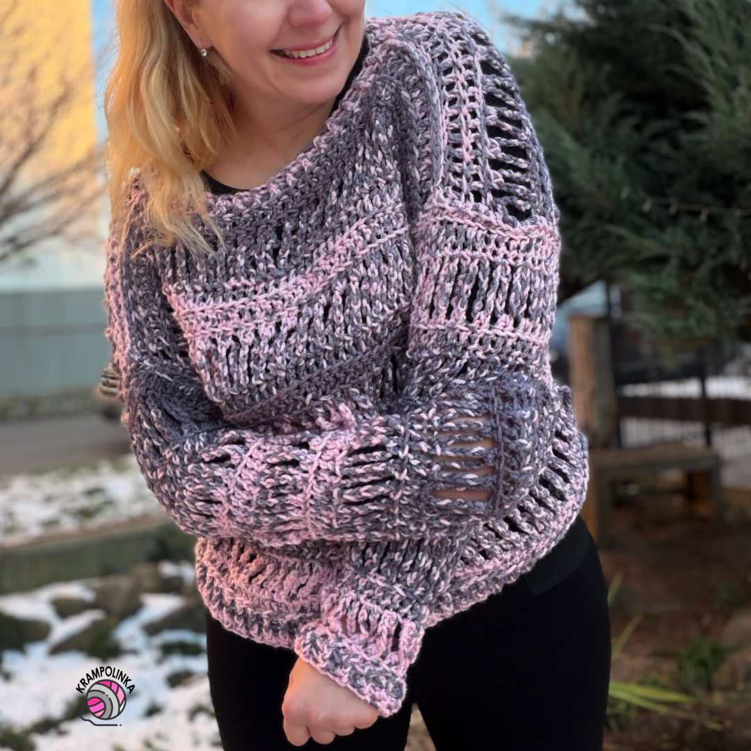 I hope your Cliff Sweater turns out beautifully and that you will enjoy wearing it with joy. Would you like to inspire others or share your experience with crocheting or styling your sweater? You can share your photos in the Krampolinka Facebook group. On Instagram, please use the hashtag #svetrikcliff so others can easily find your projects. If you tag me in your creations made using my patterns, I can reshare them in my Instagram Stories to inspire others.