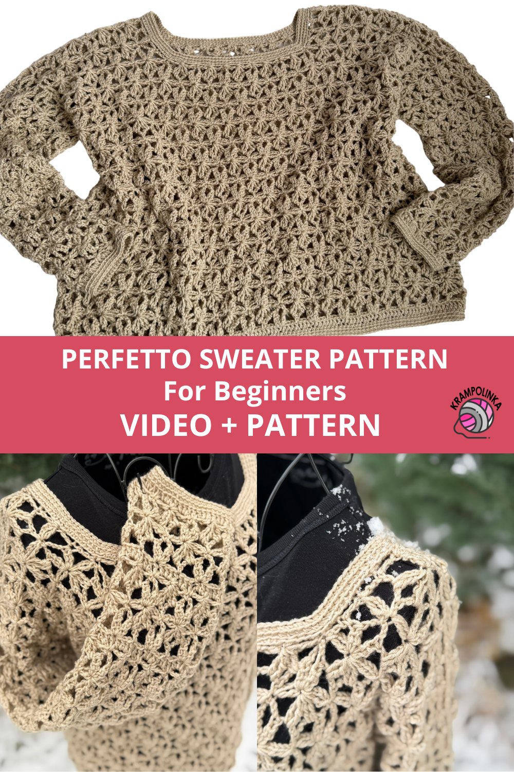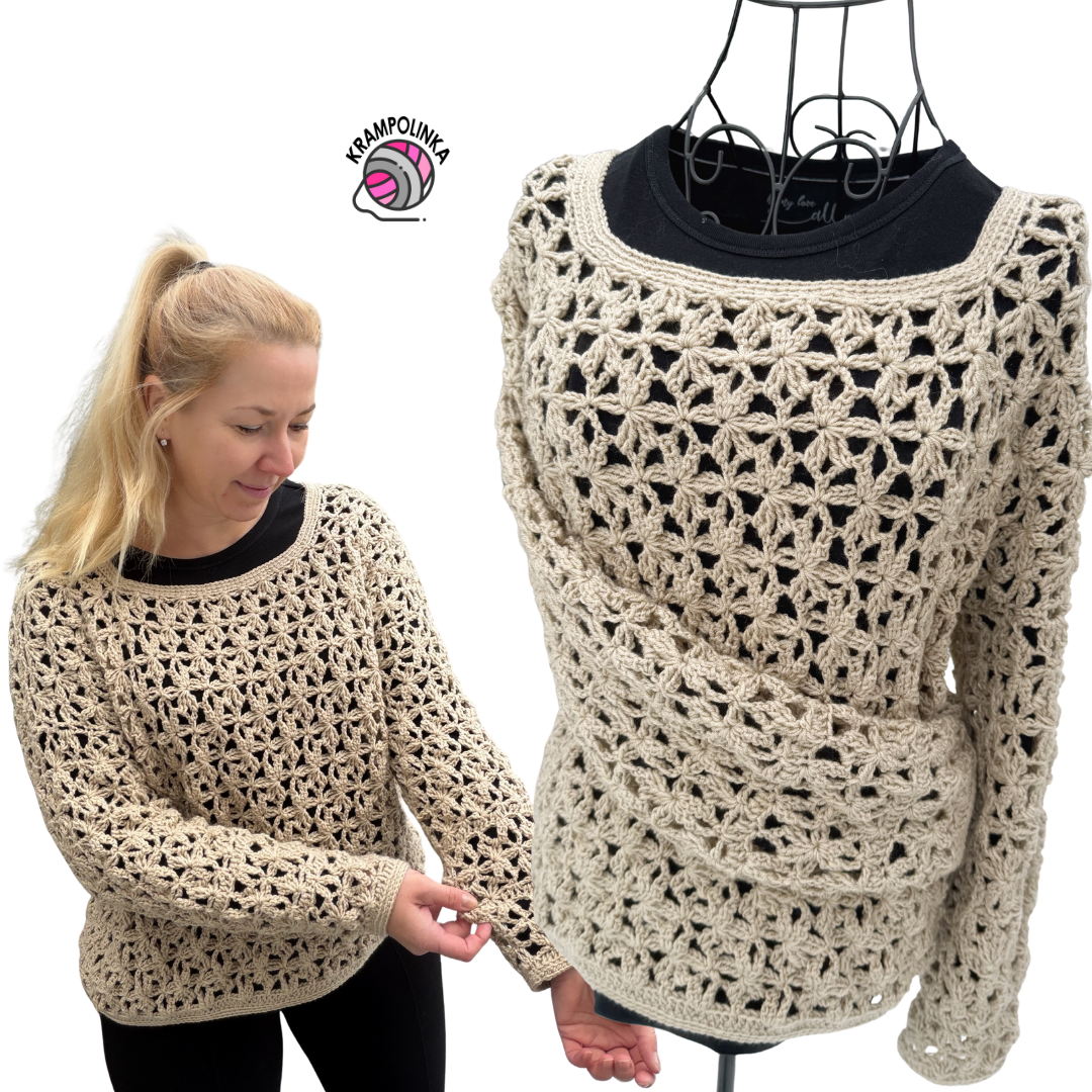I wish you great success with your Perfetto sweater and many joyful moments wearing it. Would you like to inspire others or share your experience with crocheting or styling the sweater? Feel free to upload your photos to KRAMPOLINKA Facebook Group. For easy searching on Instagram, please use the hashtag #svetrikperfetto. If you tag me, I’ll be happy to share your post in my Stories.