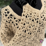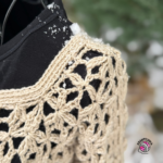Once the panels are finished, they are joined at the sides and shoulders, followed by crocheting the sleeves. These are worked in the floral stitch combined with long double crochet stitches, which gradually shape and taper the sleeve. Edges are finished with herringbone single crochet and single crochet worked through the back loop only. The result is an airy yet warm garment that can be comfortably crocheted even by confident beginners.