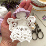 One holiday morning was originally meant for weeding the garden… but instead of grabbing a hoe, inspiration struck! Over a cup of morning coffee, a delicate fairy was born – crocheted from soft white Vlna Hep Camilla yarn.