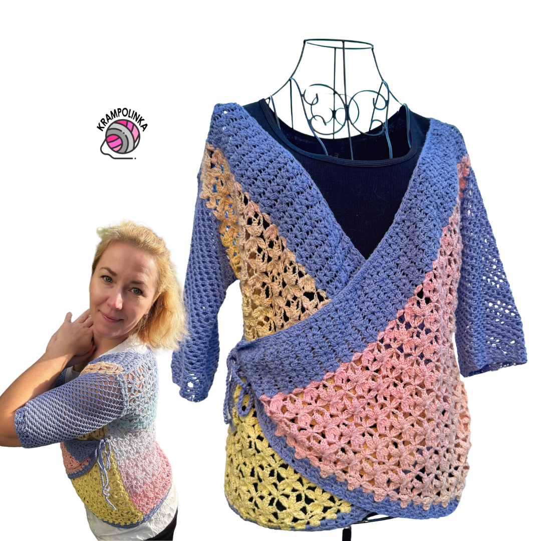 Wrap Cardigan or All-Season Blouse – Delicate Elegance with a Floral Stitch Pattern and the Pastel Rainbow Yarn LÉTO from Lara