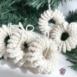 Once you’ve crocheted a long enough piece, simply join the beginning and the end together, and you can start decorating your wreath. It makes a lovely Christmas ornament, even suitable for outdoor decorations. You can also use it to embellish larger Christmas wreaths or holiday gifts.
